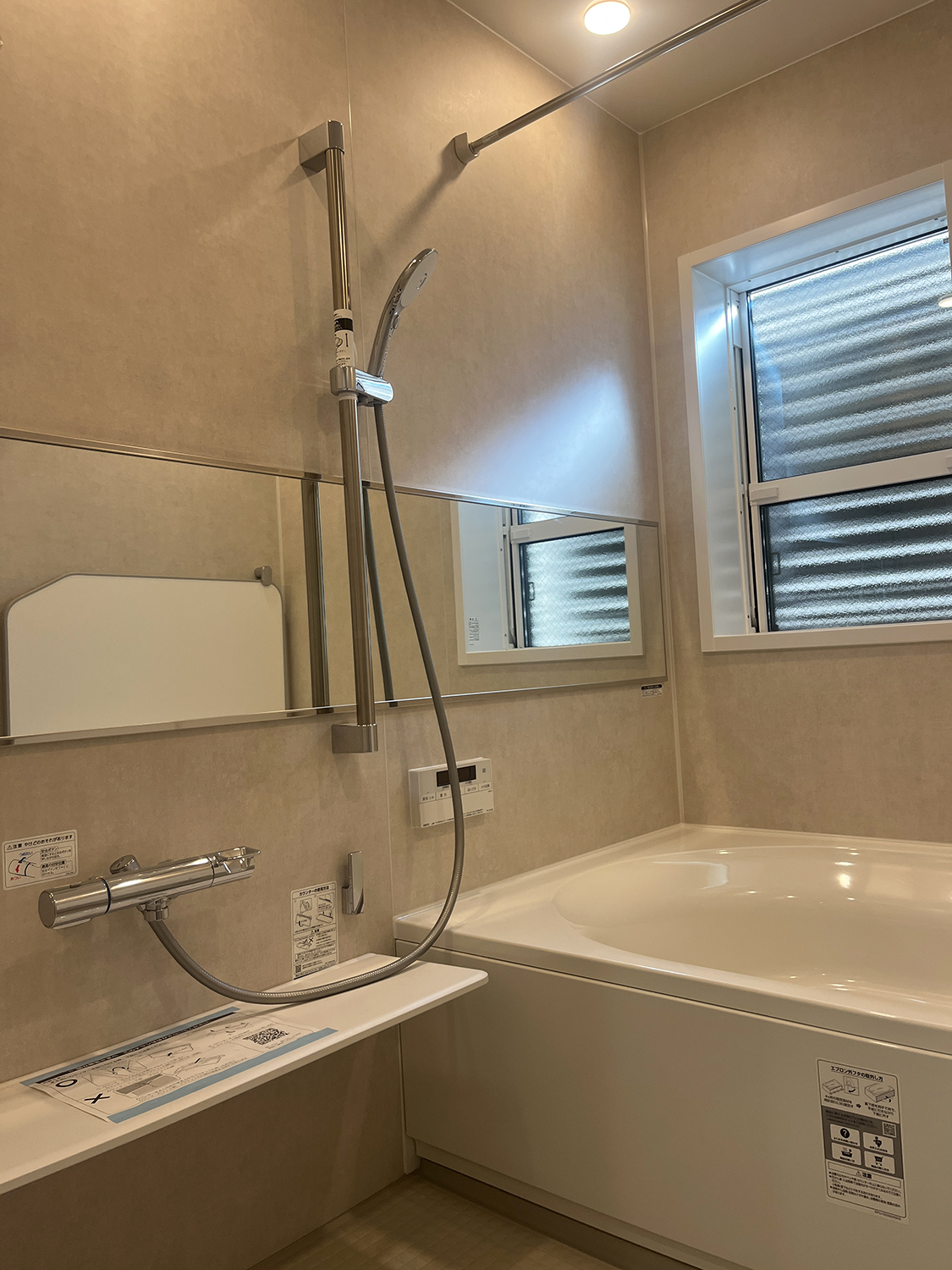■オールスライド式食器洗い乾燥機付キッチン(W2700mm)(人造大理石カウンター・両面焼きグリル) ■暖房乾燥機付ユニットバス(1620サイズバリアフリータイプ) ■TVモニター付ハンズフリーインターフォン ■シャワートイレ(節水機能付)1・2階共タンクレス ■スタイリッシュな洗面化粧台(三面鏡W1200mm+トール収納450mm) ■リビングダイニングに温水式床暖房 ■全開口部にLow-eペアガラス(網戸付) ■全居室・廊下・外構照明付(全てLED照明) ■玄関は電子錠採用 ■壁・体内結露を防ぎ構造体を腐朽から守る外壁通気工法 ■外壁は、表情豊かなジョリパット仕上 ■外構一式(境界塀・宅配BOX・ポスト・植栽等)